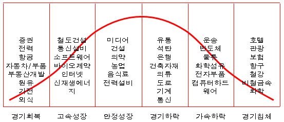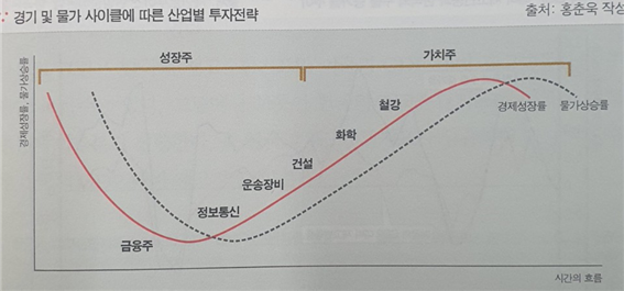 경기 사이클에 대한 투자 전략도 있습니다. 굉장히 여러 종류가 있는 것으로 보이는데, 각종 자료를 다 모아봤습니다. 마지막 사진이 기존 책에 있던 그림입니다.