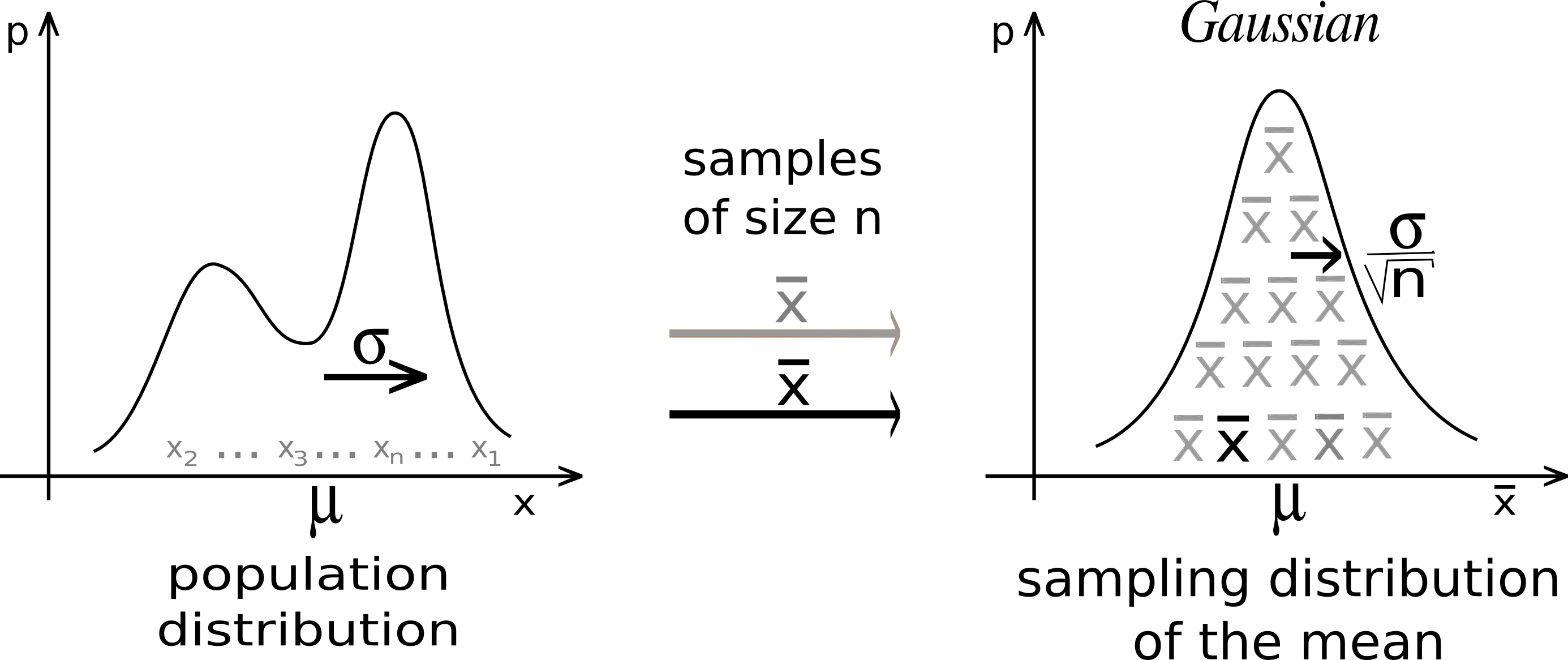 위의 그림은 어떤 분포에서 sampling 하더라도 결국 그 평균의 분포는 정규분포를 따르게 됨을 의미합니다.